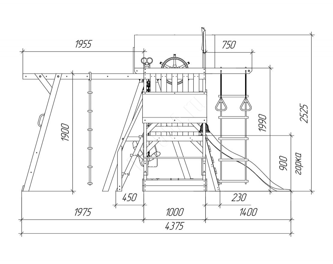 Площадка Борге 9 обладает довольно широким функционалом (который по желанию можно легко расширить). Детская площадка предназначена для дачи, коттеджа.