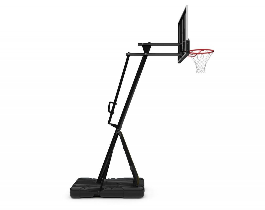Портативная баскетбольная стойка совмещает в себе мобильность и обеспечивает отскок мяча, как на профессиональной площадке. Благодаря усиленной конструкции удалось добиться увеличенного вылета щита, при сохранении компактности размещения. Он регулируется по высоте в диапазоне от 230 до 305 см, имеет защитное покрытие Poly Pade в нижней части. В основание стойки (объем 114,7 л) необходимо залить воду или засыпать песок в качестве утяжелителя.