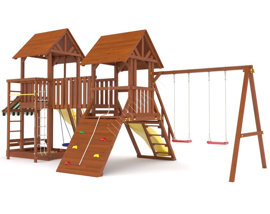 Это просторный и многофункциональный игровой комплекс, который станет центром активных развлечений для детей. Он сочетает в себе игровые, спортивные и развивающие элементы, обеспечивая интересный и безопасный досуг на свежем воздухе.