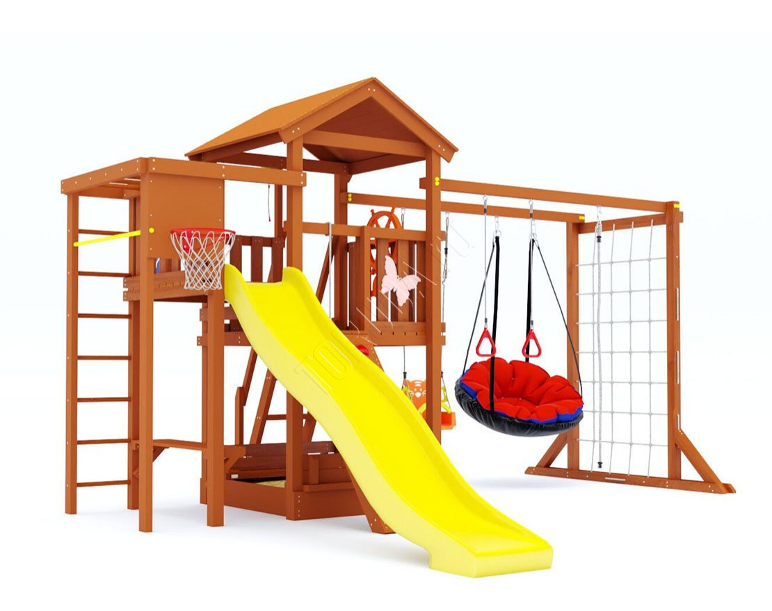 Гарда 4 Вайлэнд площадка вмещает несколько детей дошкольного и младшего школьного возраста. Удобное размещение – участок дачного дома. Ее легко собрать самостоятельно, можно заказать сборку.