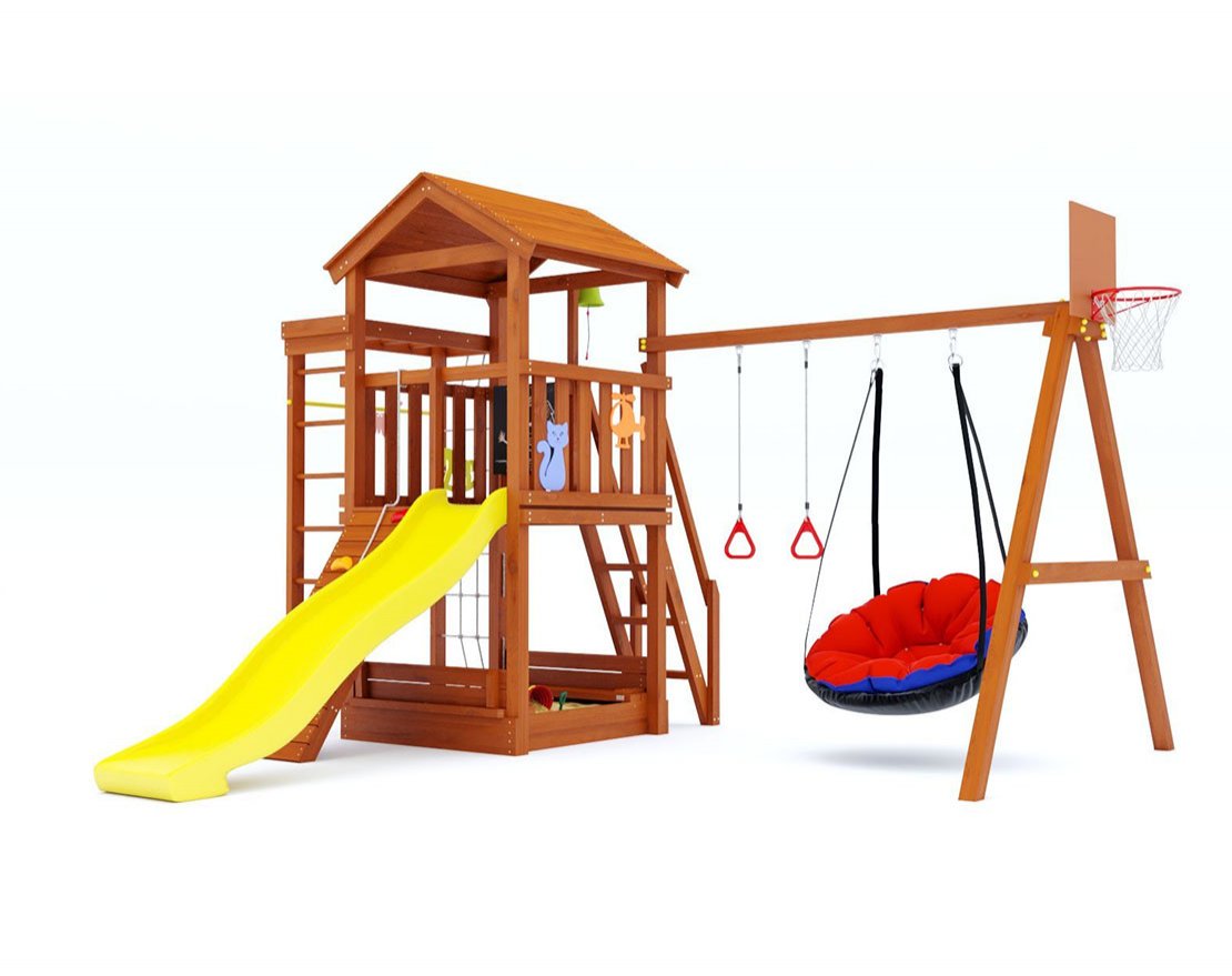 Гарда 5 Вайлэнд площадка вмещает несколько детей дошкольного и младшего школьного возраста. Удобное размещение – участок дачного дома. Ее легко собрать самостоятельно, можно заказать сборку.