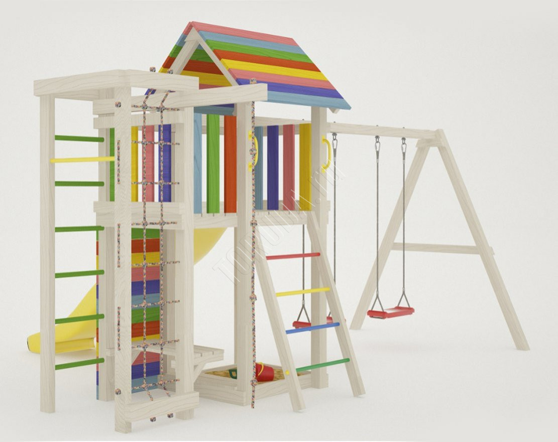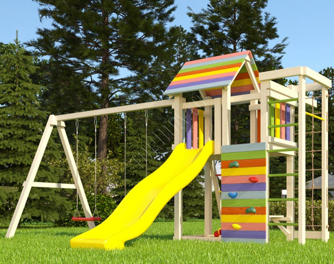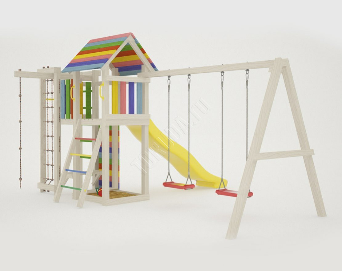 - Это универсальное решение для активного досуга и позитивного настроения непосед с трех лет. Комплекс безопасен – конструкция, качество древесины и подвижных элементов соответствуют ГОСТ. Основным материалом является экологичный клееный брус, балки которого отшлифованы и имеют закругленные края.