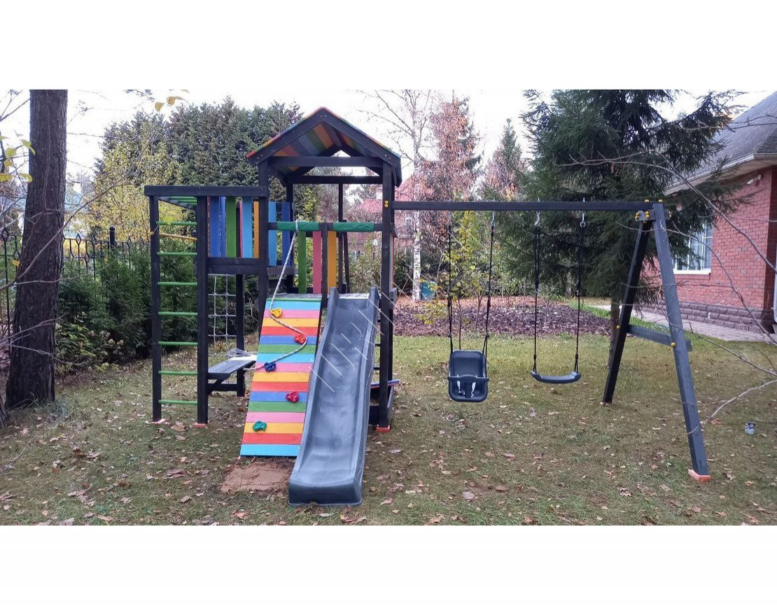 Детская площадка обладает довольно широким функционалом, предназначена для дачи, коттеджа.