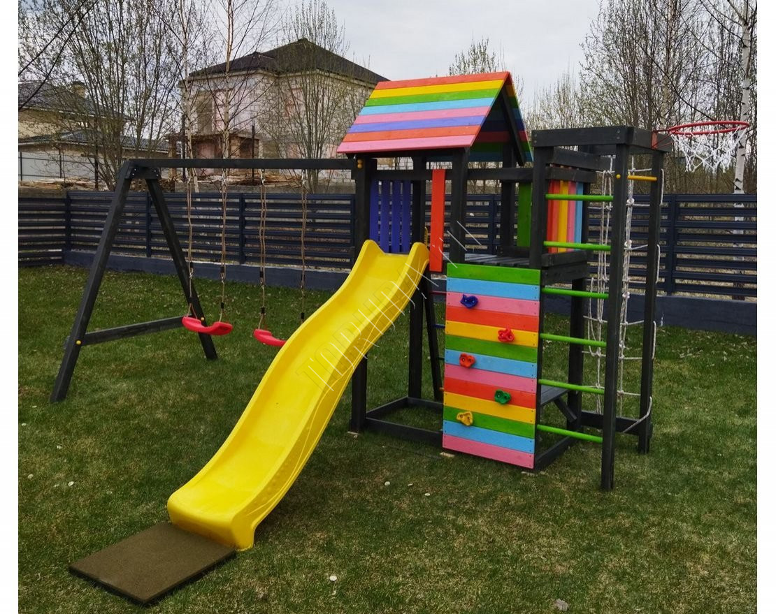 Детская площадка обладает довольно широким функционалом, предназначена для дачи, коттеджа.