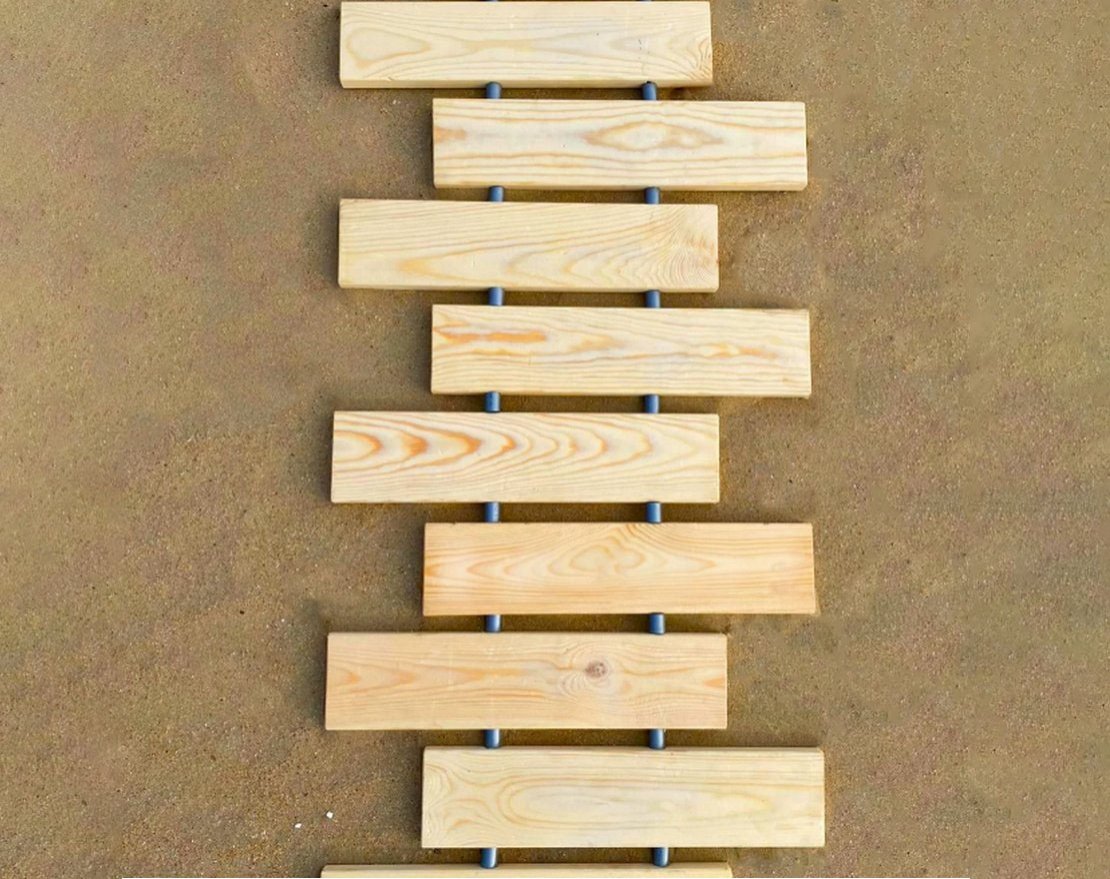 Соединение деревянной дорожки - металлический трос в пластиковой оплетке