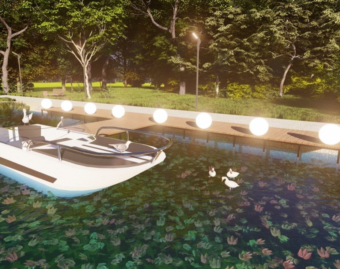 Пирс будет укреплен сваями, что обеспечит его стабильность и прочность.