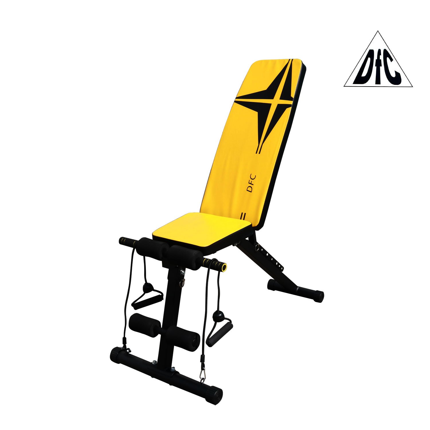 Изменяемый угол наклона скамьи (до 90°) в 5-ти положениях позволяет занять правильное положение при выполнении упражнений. Конструкция позволяет опустить спинку на раму полностью.
